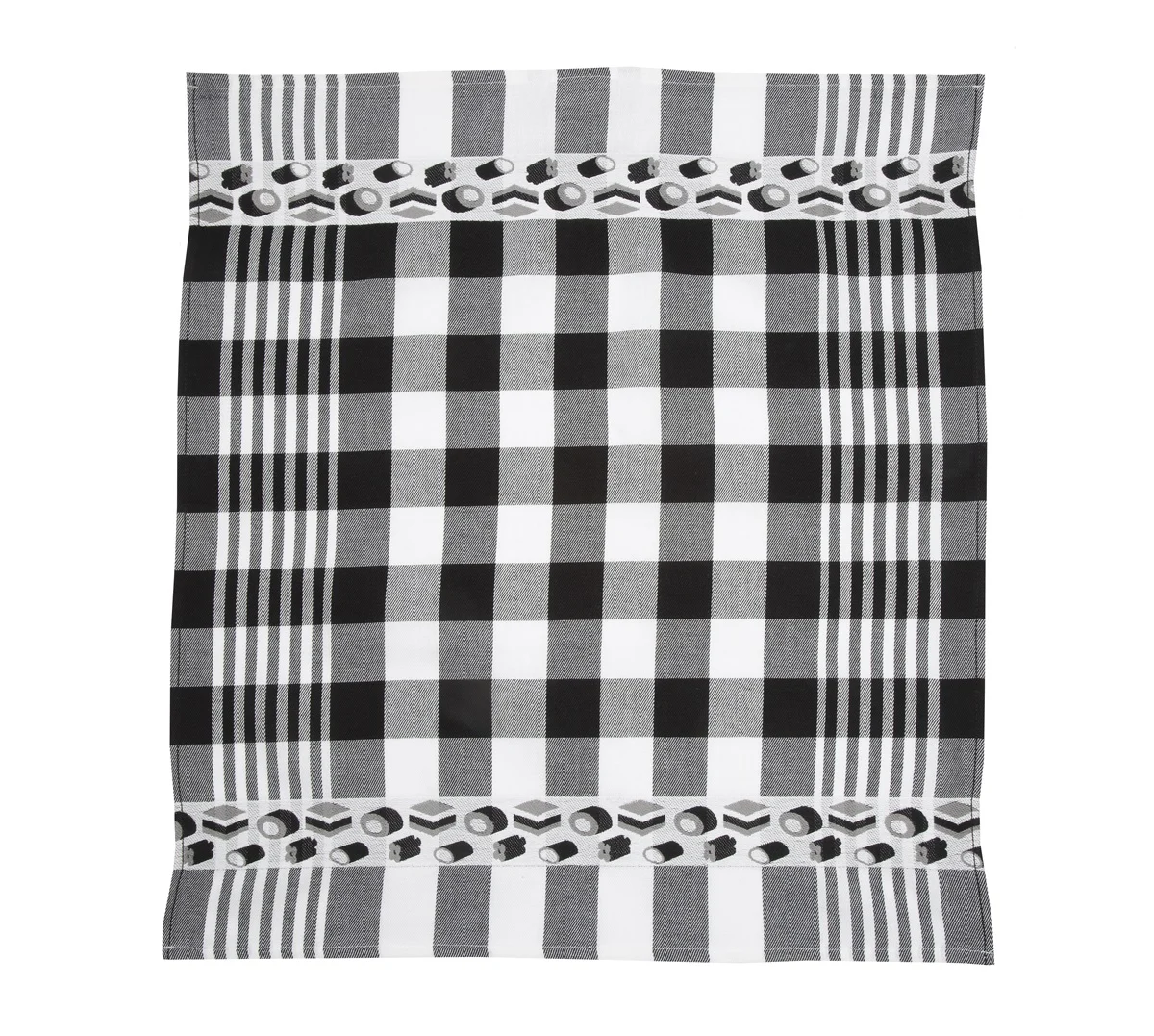 Prachtig keukentextiel en zeker Typisch Hollands.Wat een mooie theedoek.-design- in zwart-wit (drop/snoep)
