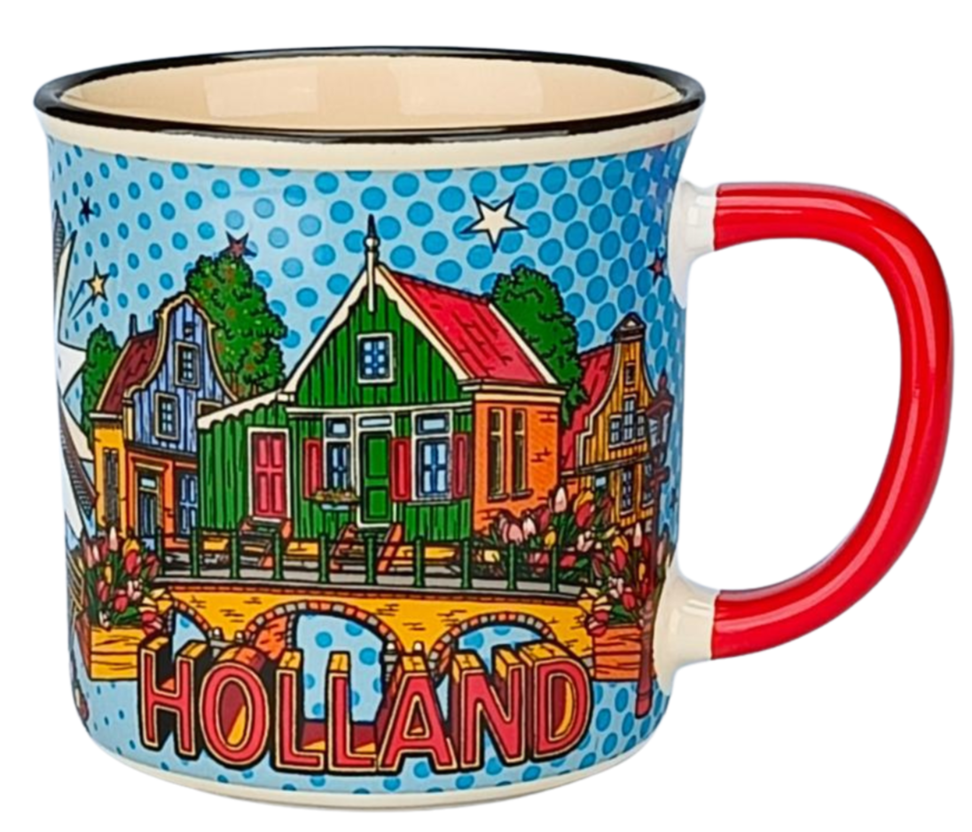 Waanzinnig kleurrijke mok uit de collectie van Holland-City-VibesMokken in groot of klein. Ook in deze print verkrijgbaar de grote magneten.