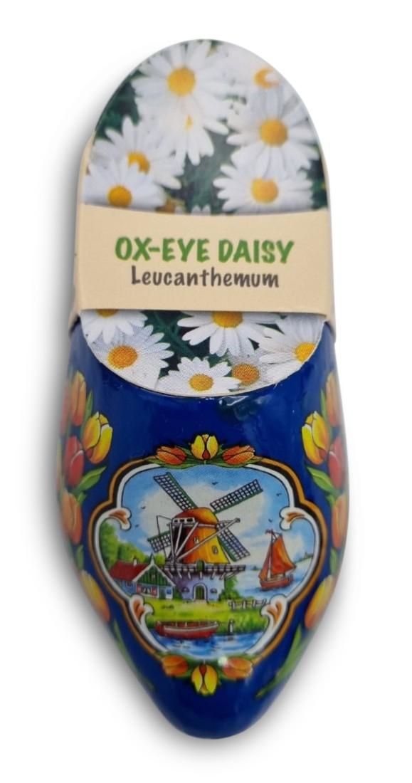 • Typisch Hollands Klompje - Blauw met zaadjes "Ox-Eye-Daisy"