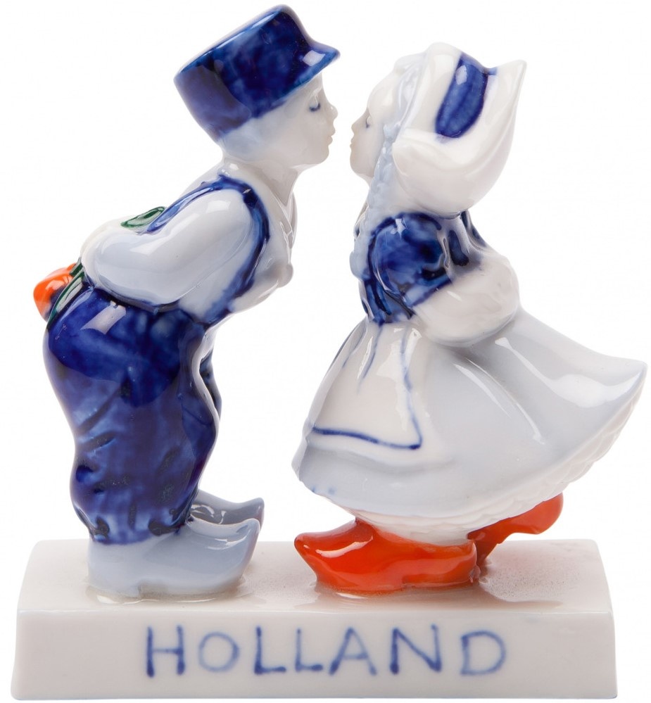 Het bekende kussende koppel van Nederland. "Typisch Hollands " Dit Delftsblauwe kussende paar! Het is een leuk geschenk voor een bijzondere vriendschap, verloving of zelfs huwelijk. Dit kussende paar heeft een moderne vormgeving. Met opvallen