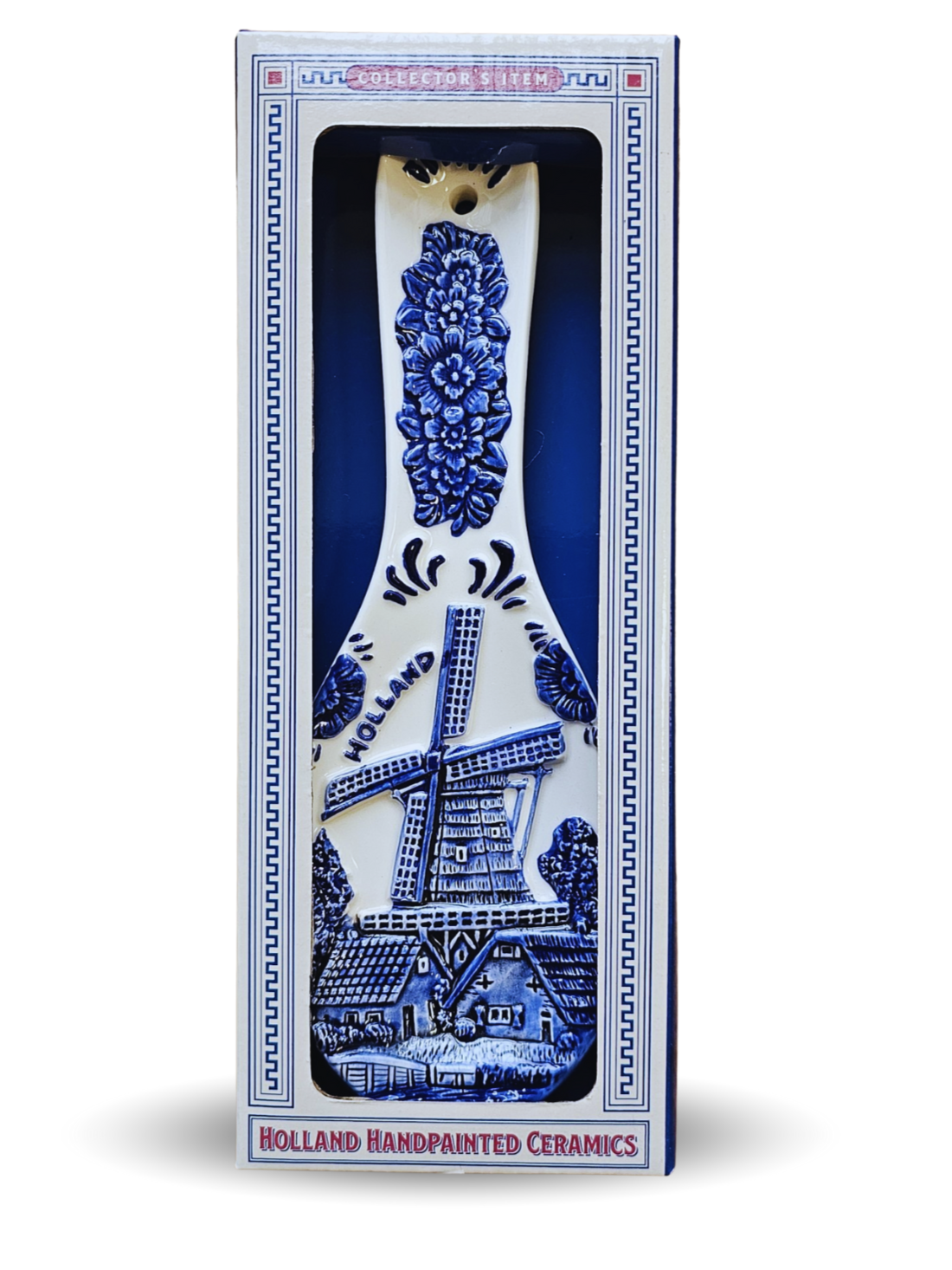 Het traditionele Delfts Blauwe ontwerp met molenmotief brengt een vleugje Hollandse charme in huis en maakt van dit kookhulpje ook een decoratief item.