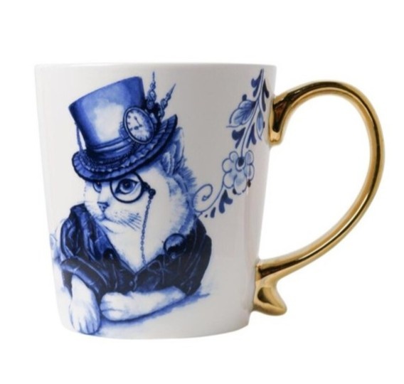 Luxe mok - Delfts blauwe (gouden oor) - Poes