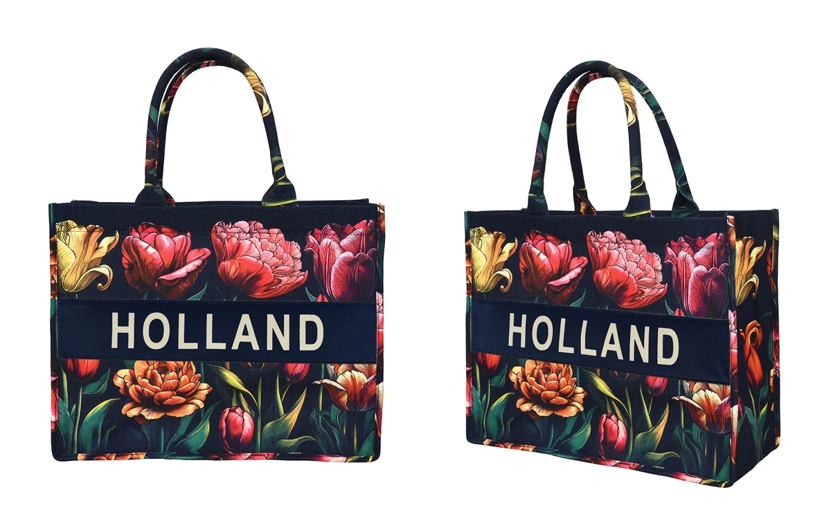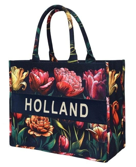 Luxe zwarte schoudertas - Hollandse tulpen Afmeting(28x37x12cm) Stevige hengels - Aparte zijvakjes .