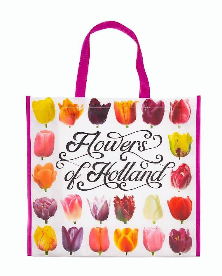 Luxe Shopper Flowers of Holland Leuk boodschappen doen met deze Shopper van Typisch Hollands Door zijn bescheiden formaat is deze ook ideaal als geschenkverpakking of voor uw cadeaupakket.