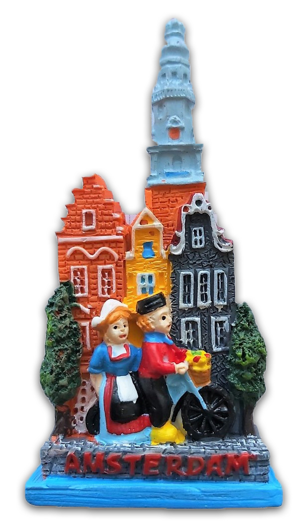 Afgebeeld bij grachtenhuizen in Amsterdam.