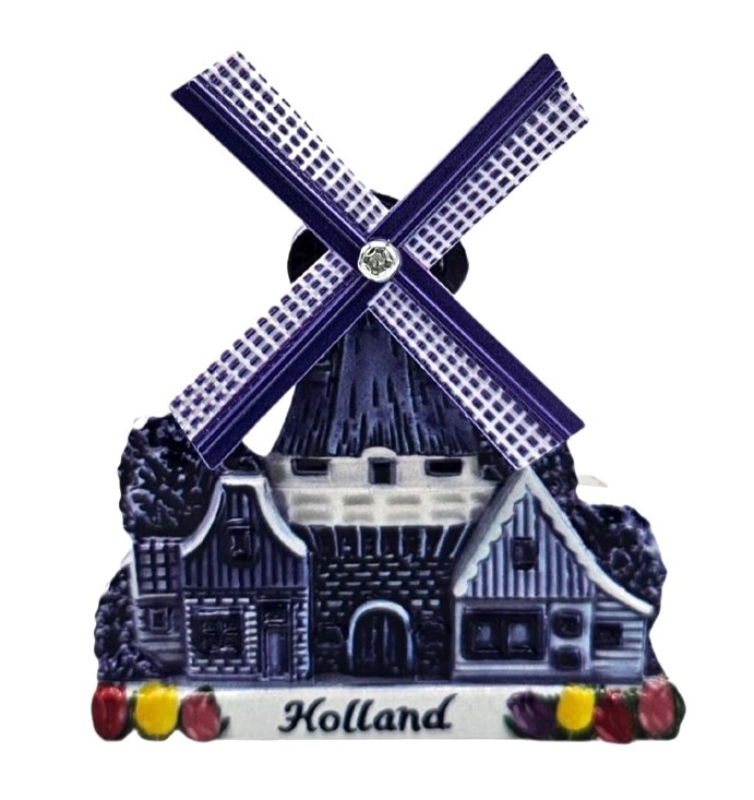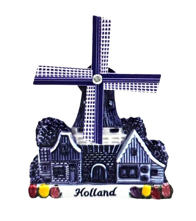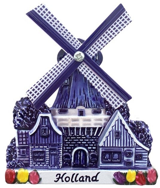 Magneet dorpsmolen - Polyprint - Holland - ( Delfts blauw)