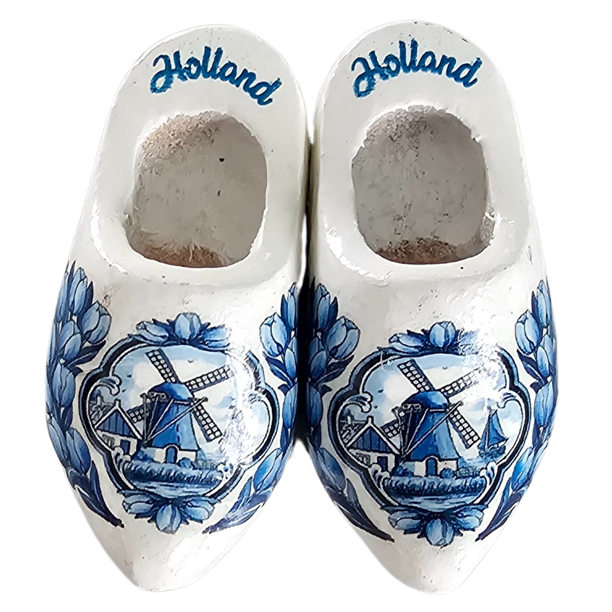 Deel Hollandse charme uit met deze witte magneet klompjes (4 cm) met Delfts blauw decor. Versierd met een molenlandschap, tulpen en de tekst 'Holland'. Dankzij de sterke magneet en het compacte formaat zijn ze het ideale souvenir om royaal weg te geven.