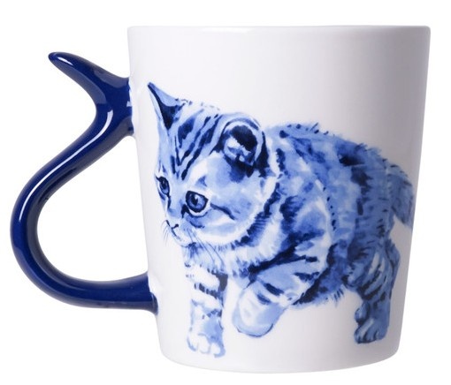 Het handvat van de mok heeft de vorm van een kattenstaart!