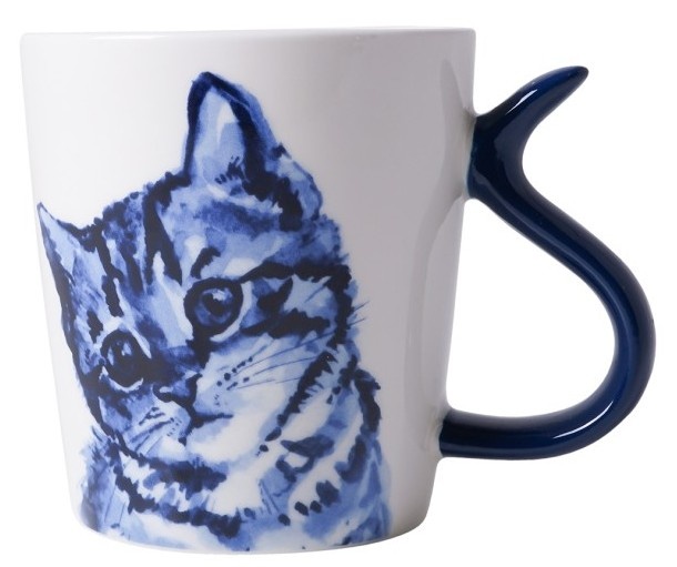Het handvat van de mok heeft de vorm van een kattenstaart!