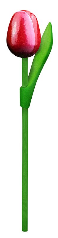 Deze houten tulp heeft een lengte van 20 centimeter.