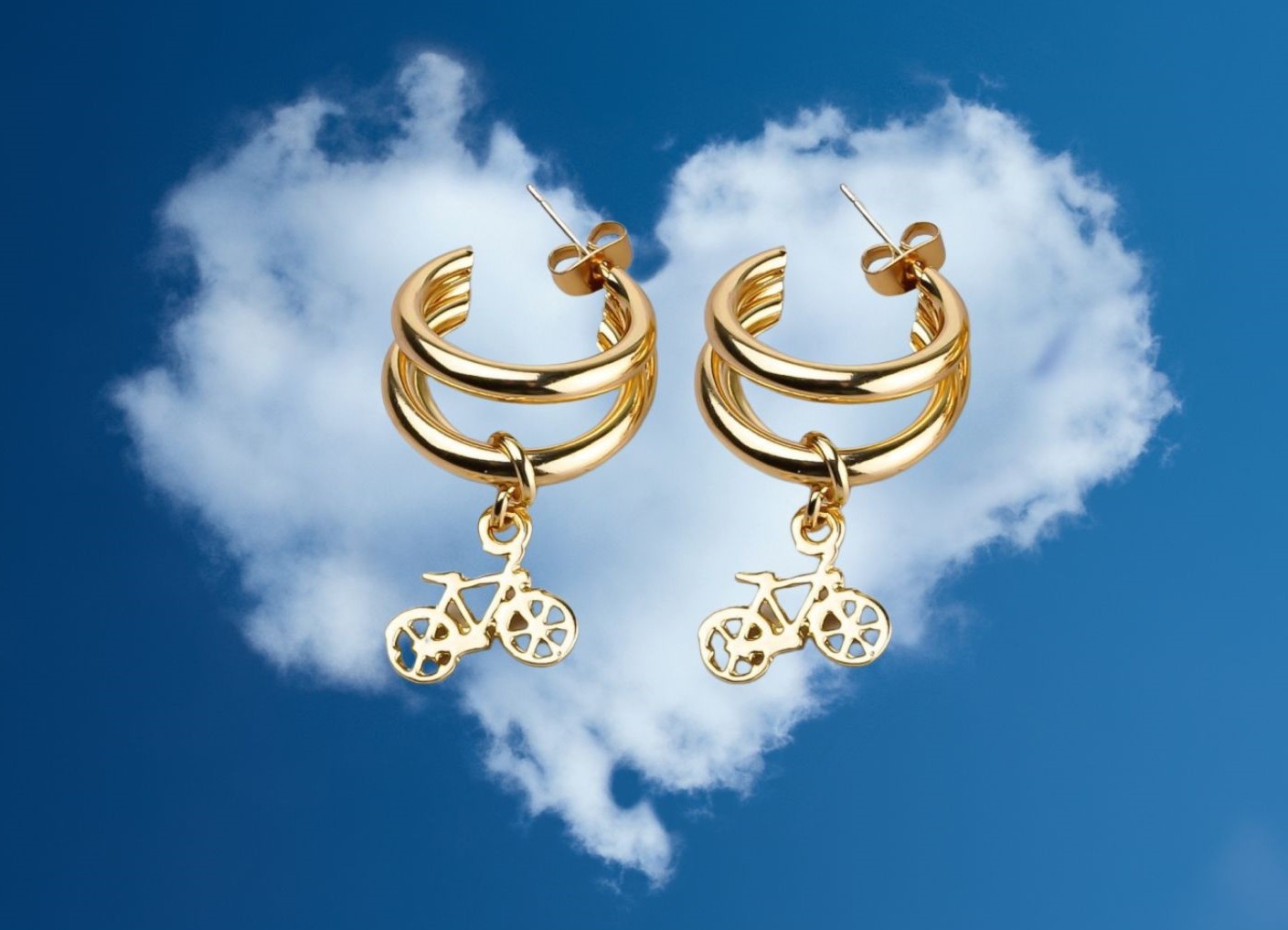 Deze goudkleurige dubbele oorringen met een fietsbedel zijn hét sieraad voor elke liefhebber van de Nederlandse fietscultuur. Nikkelvrij, uitgevoerd op een handige steker en 4 cm lang. Een sportieve én elegante knipoog naar ons favoriete vervoersmiddel.