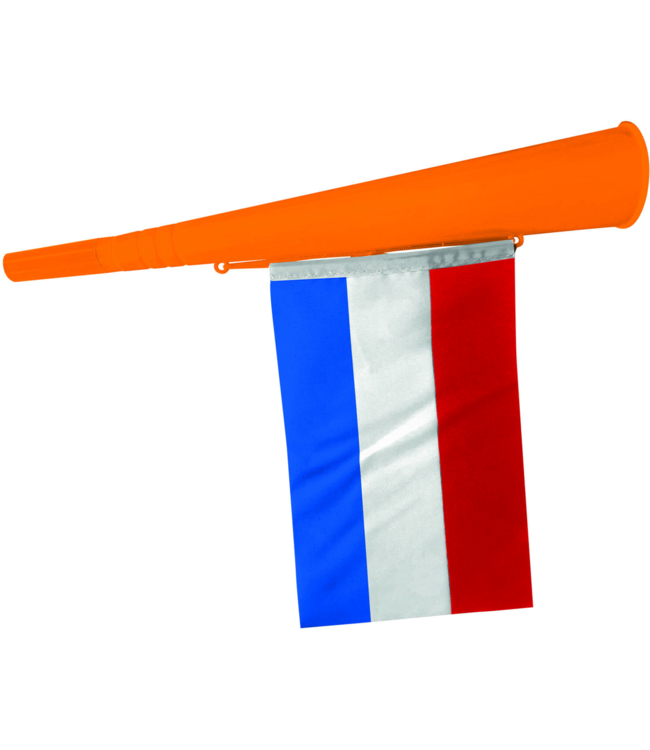 Toeter met Vlag Holland. Inhoud: toeter, vlag en touw. Kleur: Meerkleurig. Bijvoorbeeld te gebruiken tijdens de volgende feestgelegenheid/feestgelegenheden: voetbal. Afmetingen van de vlag: 21 x 14 cm. Lengte van de toeter: 36 cm. Het artikel is gemaakt v
