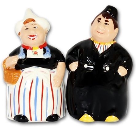 als peper en zout stel.Goed afsluitbare dopjes aan de onderzijde.Afmeting 4x3 cm Hoogte 9 cm