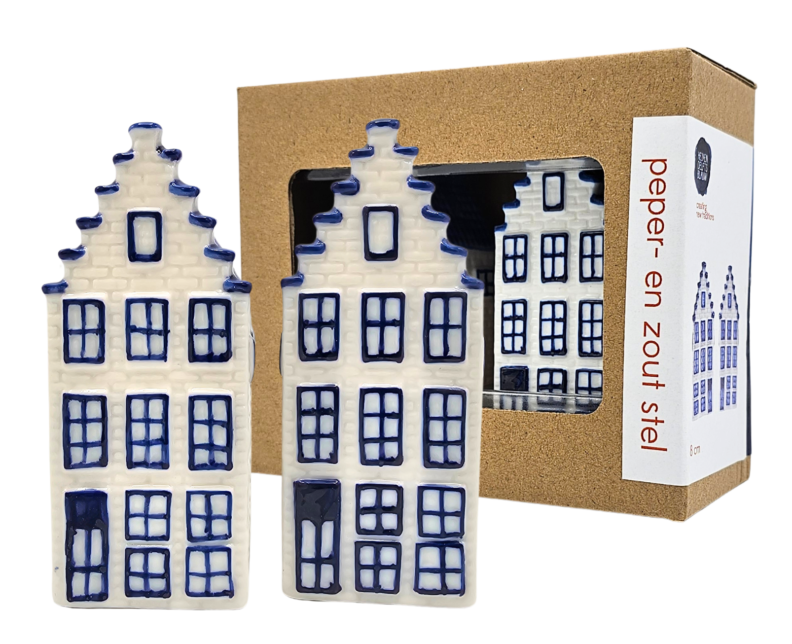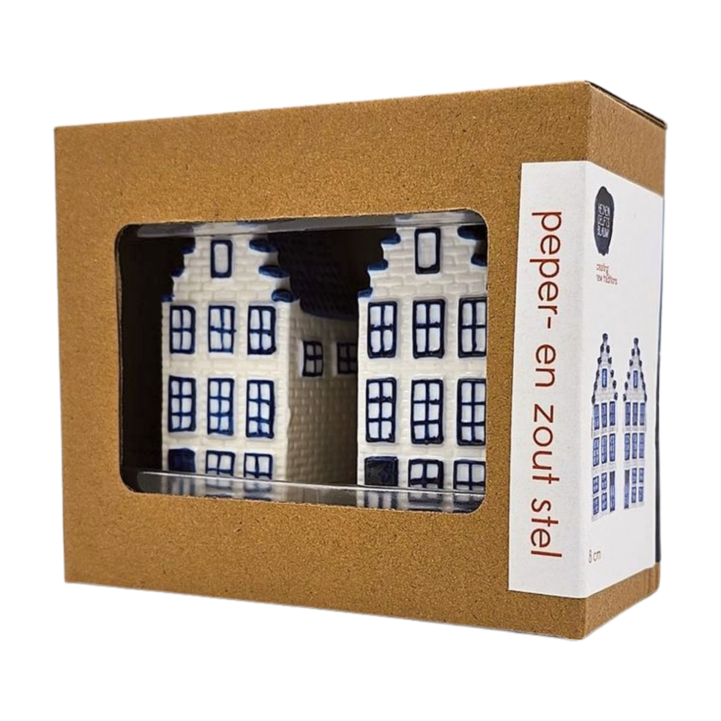 Breng de Amsterdamse gezelligheid naar je tafel met dit peper- en zoutstel in de vorm van grachtenpanden. Gemaakt van hoogwaardig porselein met subtiele, handgeschilderde accenten. Een stijlvol en tijdloos sieraad dat past in elk hedendaags interieur