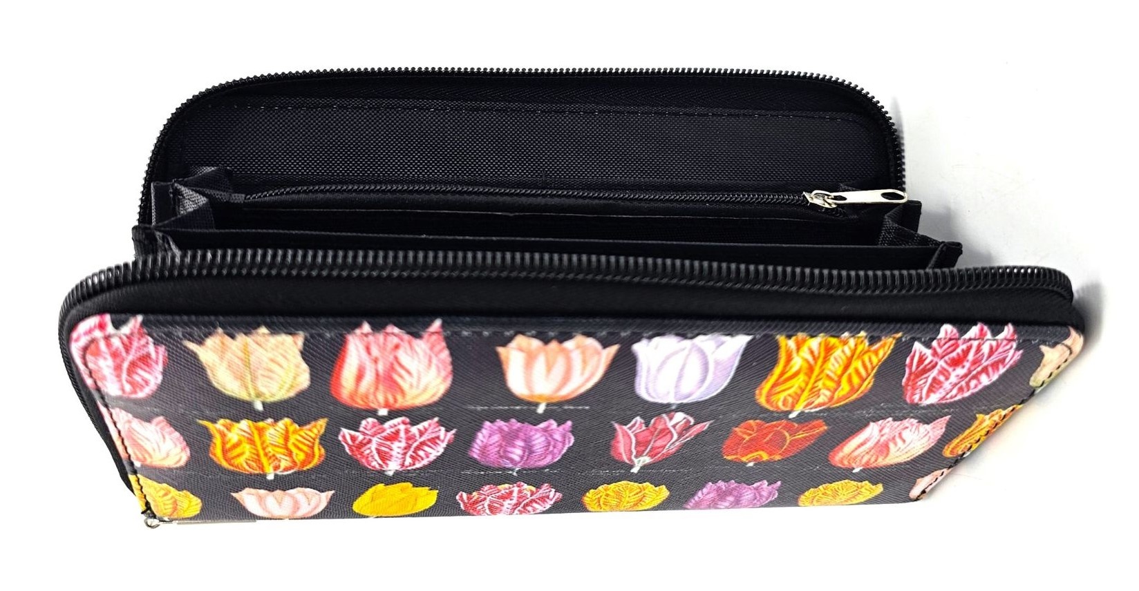 Indeling : 2 Grote hoofdvakken Daartussen een klein vak (met ritsje ) voor kleingeld. Beide hoofdvakken hebben aan beide zijden 2 middelgrote vakken en 4 kleine vakjes voor genoeg pasjes en vaste klantenpassen - spaarkaarten.