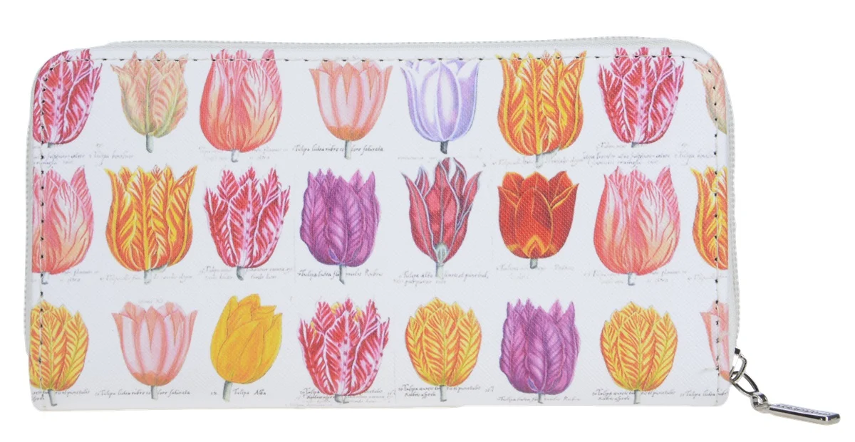 Portemonnee - Dames - Wit met multikeur tulpen