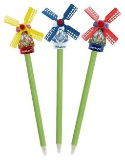 Deze balpen heeft een molentje op de top, en heeft een lengte van 16 cm.