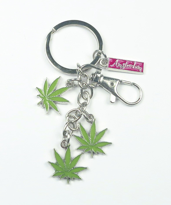 Geinige sleutelhanger met 3 cannabisblaadjes