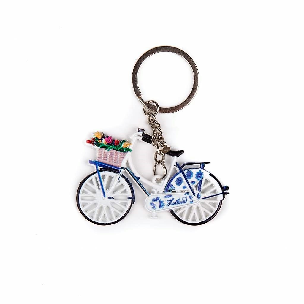 Typisch Hollandse sleutelhanger met een fiets.Tulpen in het Mandje.Kortom , wat een leuk cadeauVerkrijgbaar in vele kleuren.