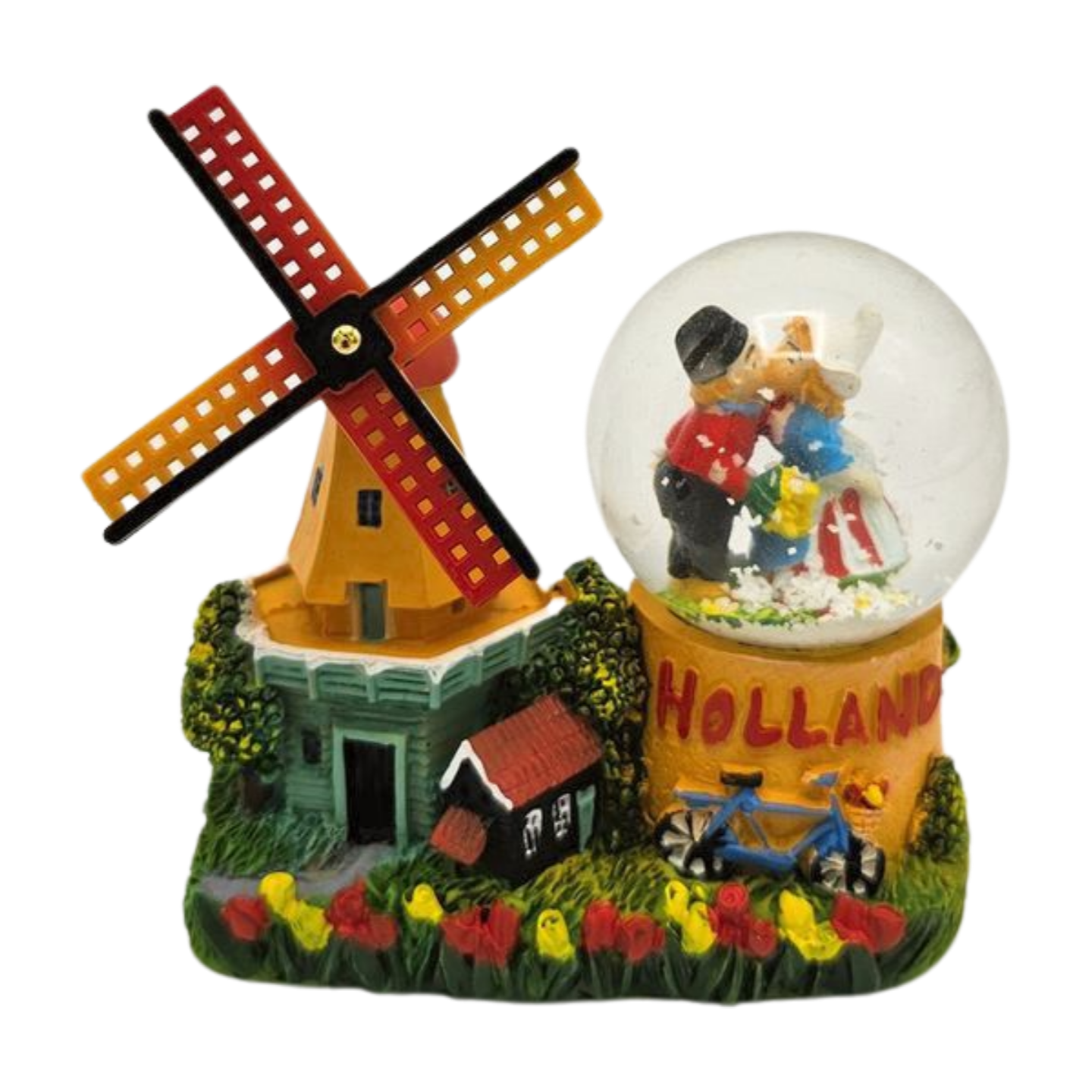 Waterbol molen-kuspaar gedecoreerd met fiets rondom Holland