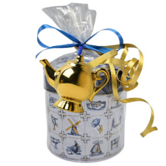 Samen verpakt met een kerstboomhanger (gouden theepotje).