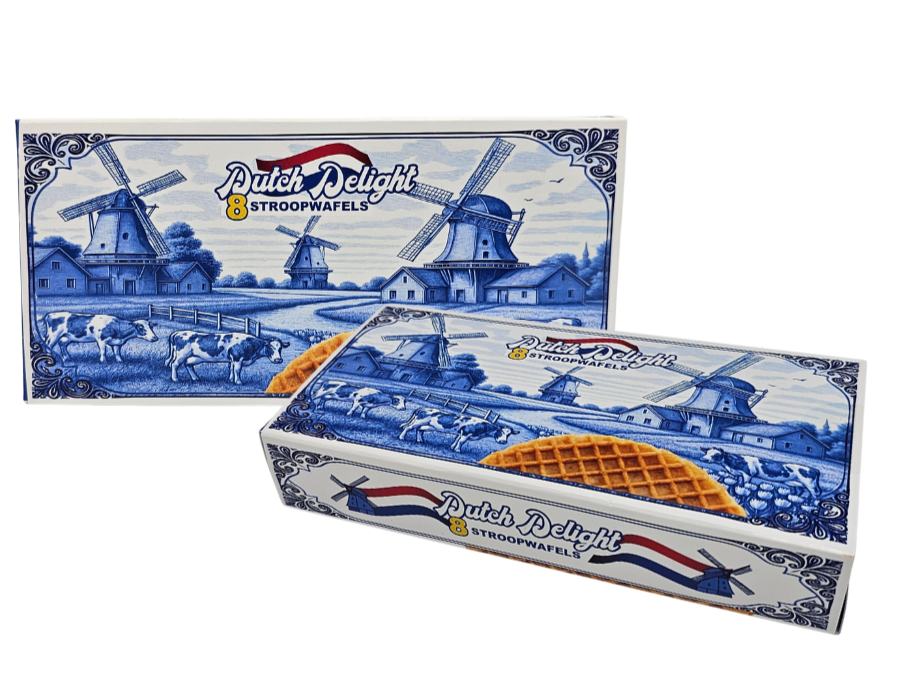 Elke verpakking bevat 8 stroopwafels met een totaalgewicht van 255 gram.