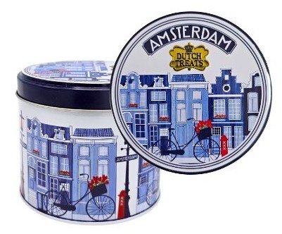 • Typisch Hollands Stroopwafels in blik  Grachtenpandjes en fiets