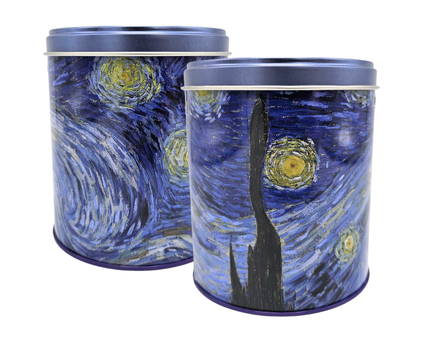 Bijzonder mooi gedecoreerd stroopwafelblik,. van Gogh`s sterrennacht. (roomboter bereidt)