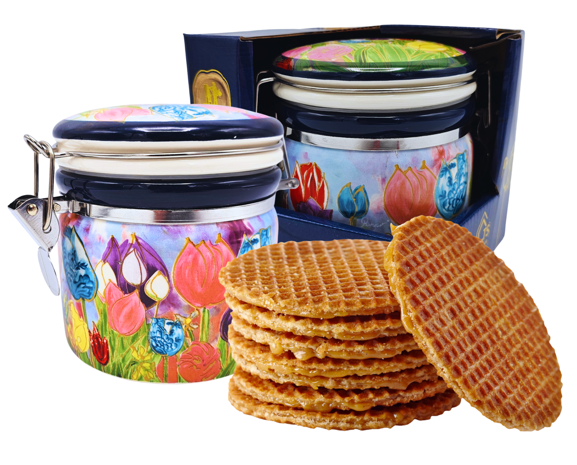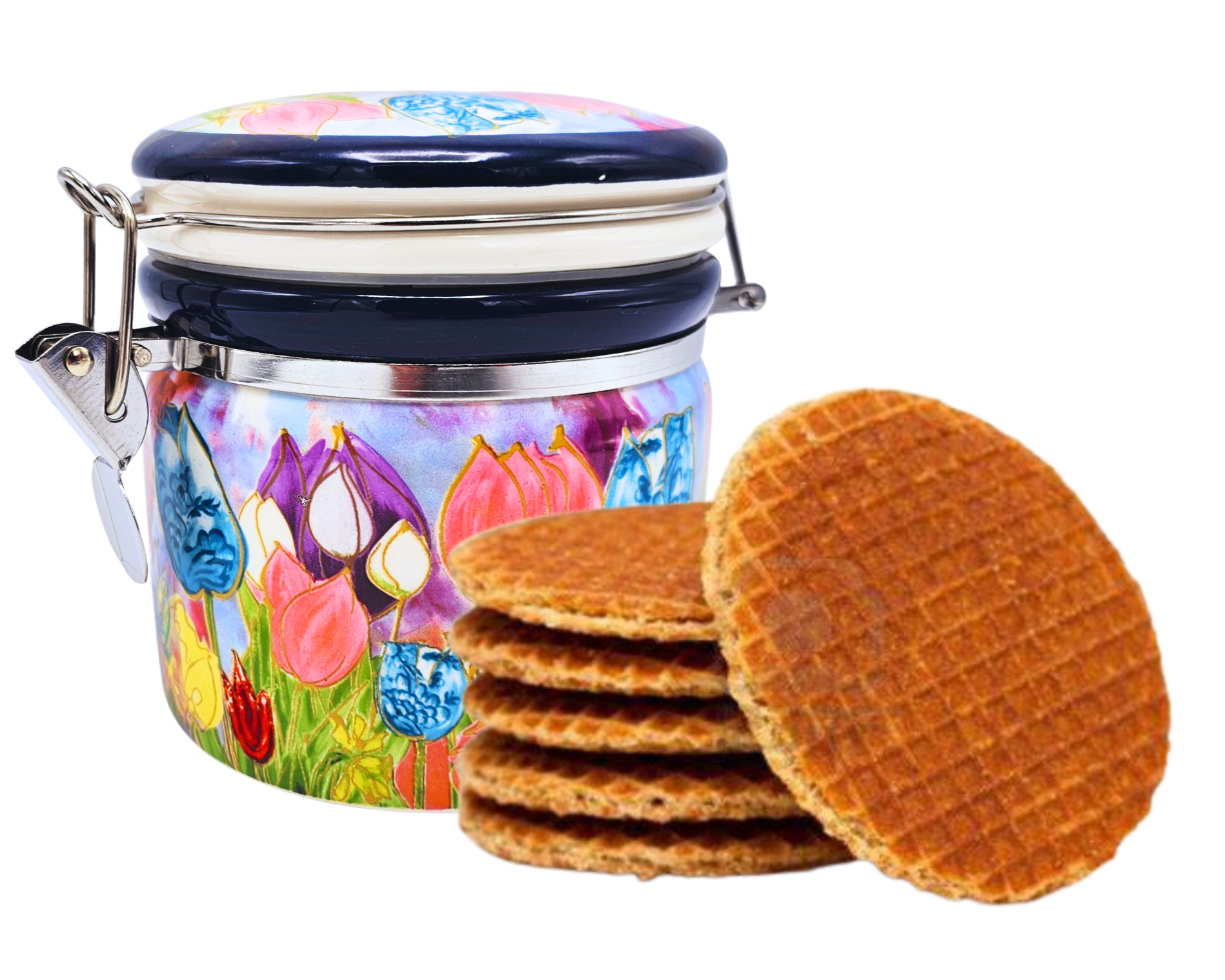 Deze pot is gevuld met een toefzak met 8 stroopwafels