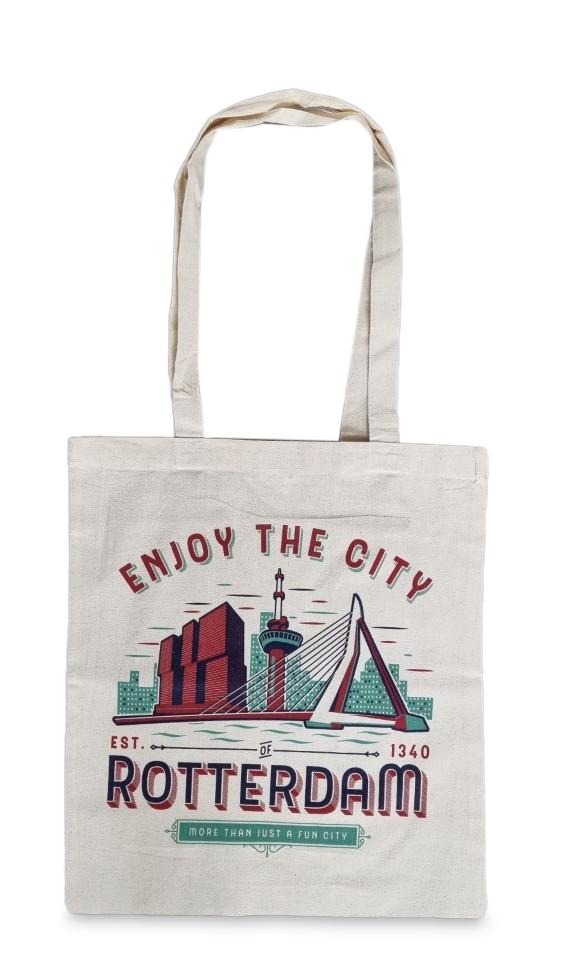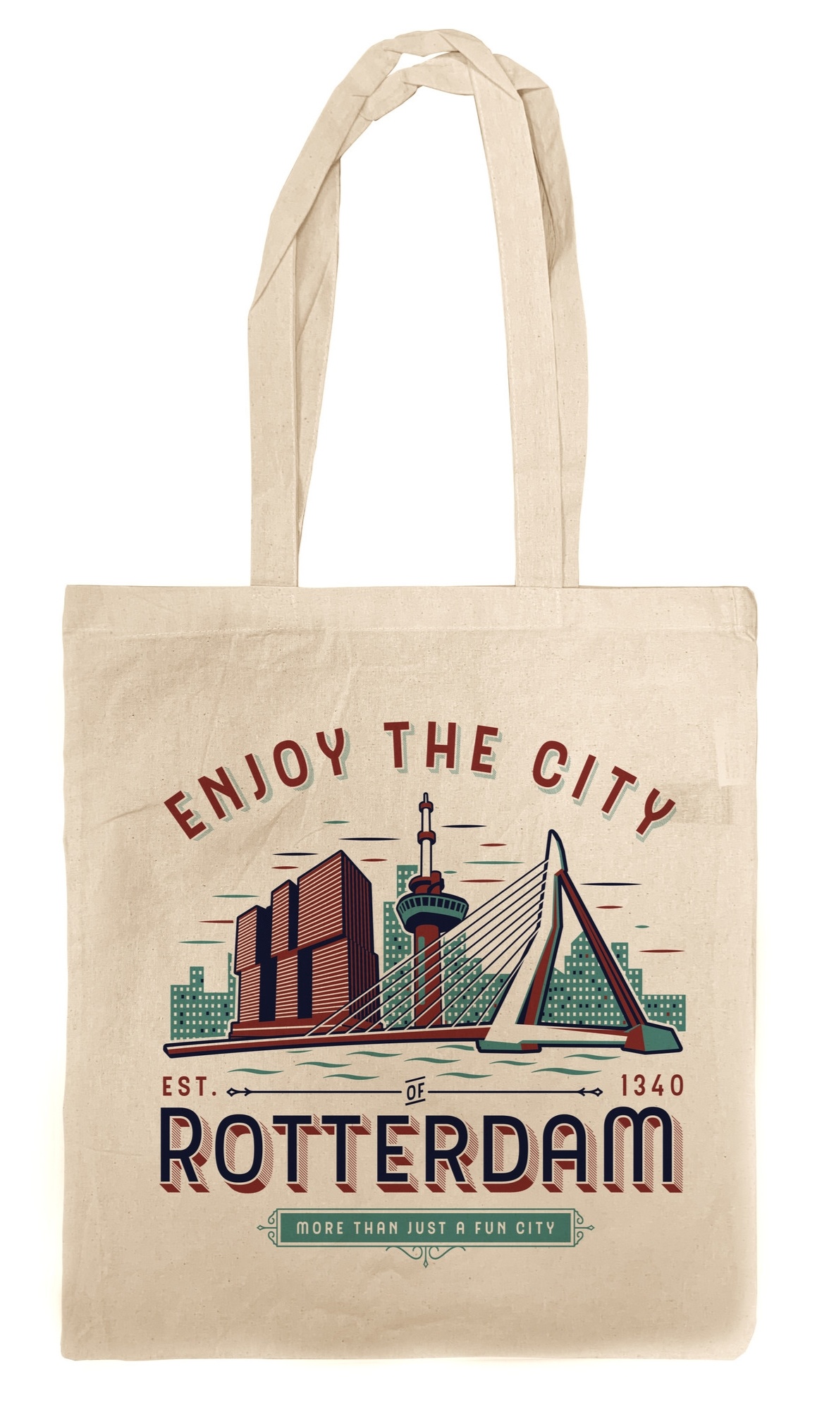 Een katoenen Rotterdam draagtas - dus weg met dat plastic.