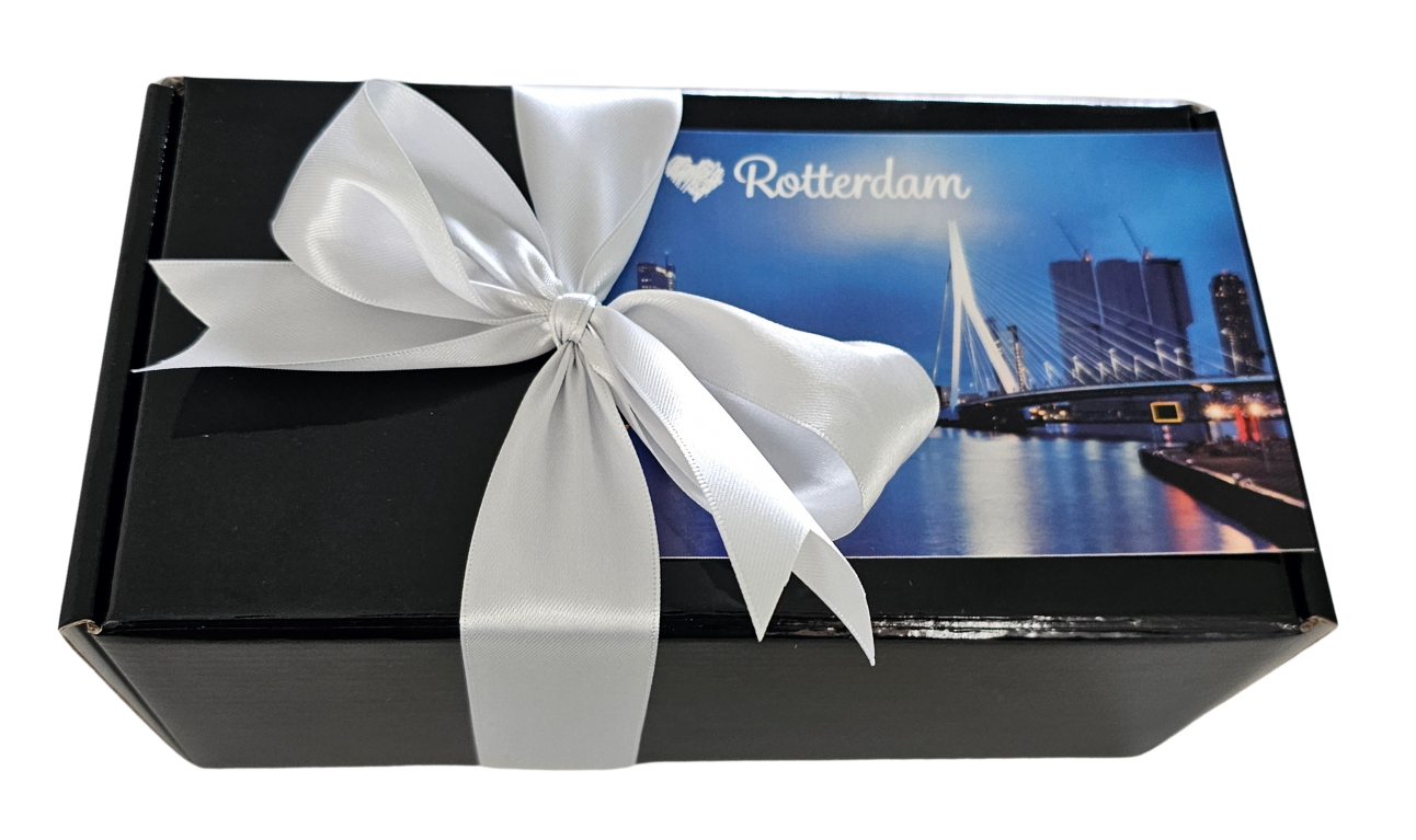 Super stevige mok - Erasmusbrug en Euromast RotterdamAls cadeau-set geleverd met stroopwafels, thee en een handig thee-ei.