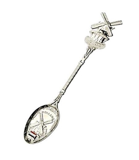 Theelepel met Hollands relief in de schaal van de lepel. Afmeting 14x2,5 cm Wordt geleverd in mooie (geschenk)cassette (Zilverkleur) Molen