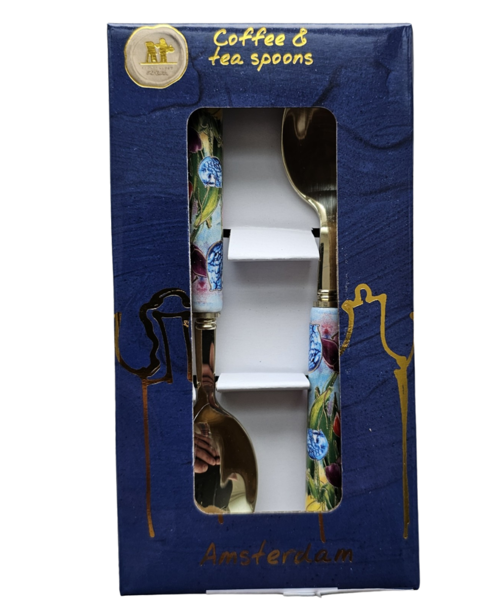 De set bestaat uit twee theelepels stijlvol verpakt in een compacte giftbox – perfect als cadeautje of als kleurrijke toevoeging aan je eigen servies.