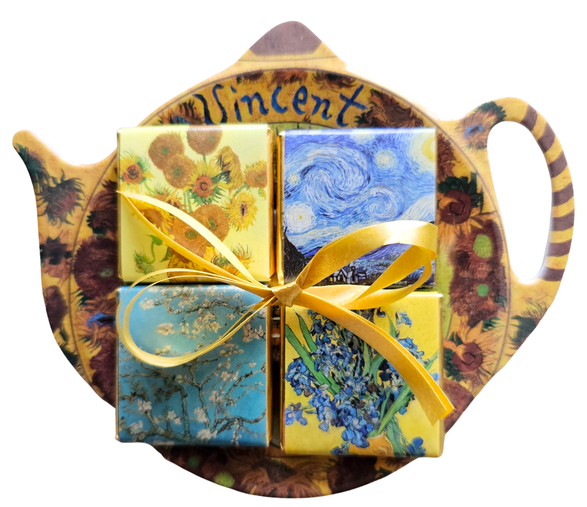De chocolaatjes worden assorti verpakt, dus het is altijd weer een verrassing welk schilderij u treft.