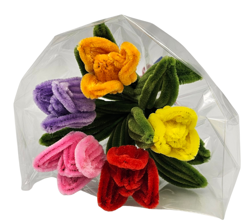 Elke tulp is met uiterste precisie gedraaid en professioneel afgewerkt, op een manier die zelfs een bloemist zou waarderen.