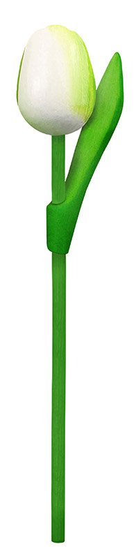 Houten Tulp - Wit-Groen • Lengte: 20 cm (klein) • Hoogglans coating • Elegante dunne steel