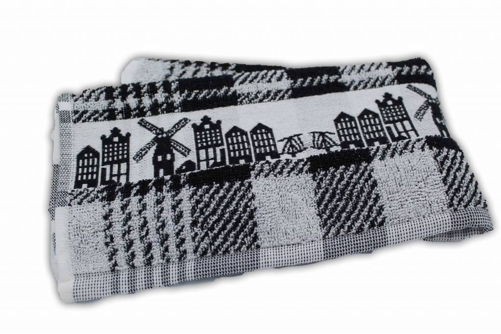 Zwart , Witte handdoek met gevelhuisjes