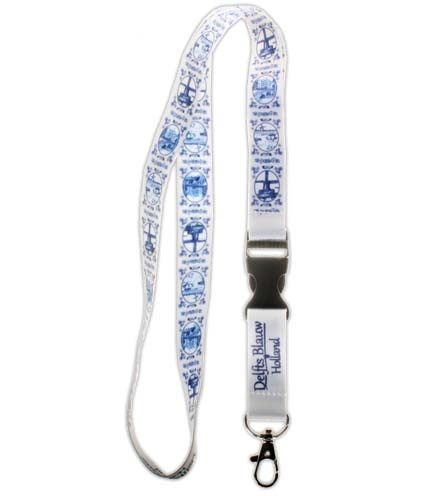 Key-Cord- Delfts - Blauw met clip sluiting, een metalen karabijnhaak. Decoratie en tekst : Delfts blauw - Holland