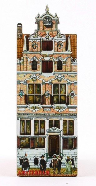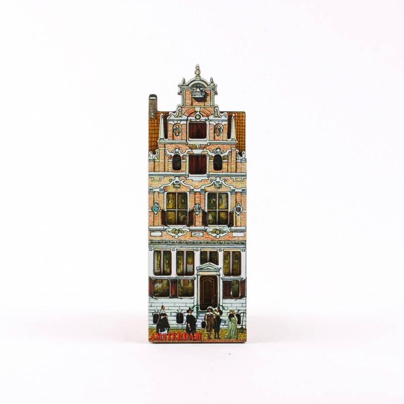 De gecroonde Aep Magneet Grachtenhuis Amsterdam, Dit huisje is een bestaand huisje. Het heeft een afmeting van 3.5x10cm Vervaardigd van MDF hout en speciale coating.