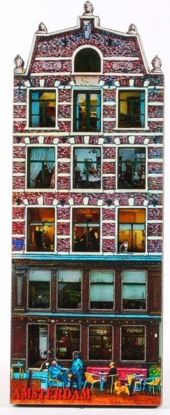 De Pieper. Magneet Grachtenhuis Amsterdam, Dit huisje is een bestaand huisje. Het heeft een afmeting van 4.5x10cm Vervaardigd van MDF hout en speciale coating.
