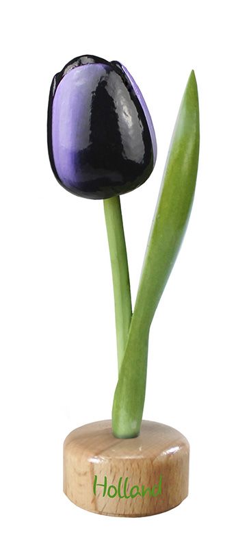 Tulp op voet - Aubergine Hoogte incl.voet: 19 cm Mooie blanke voet, met daarop de tekst: Holland Tulpen als iconisch geschenk aan familie of relatie`s. Tulpen als Typisch Hollands cadeau!