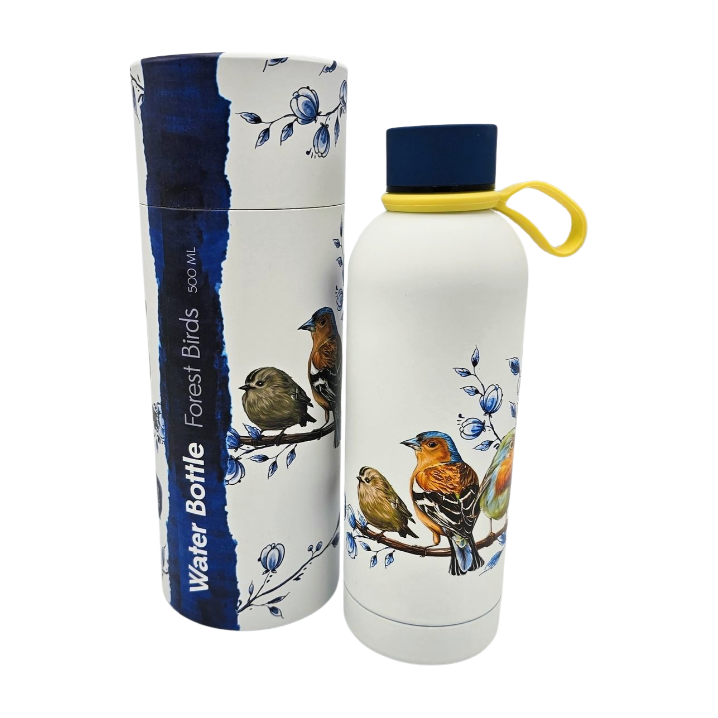 Waterfles (isoleerfles) Bosvogeltjes Hoge kwaliteit: Deze 500 ml fles is gemaakt roestvrij staal Milieuvriendelijk en duurzaam Zeg vaarwel tegen plastic flessen voor eenmalig gebruik(en statiegeld)
